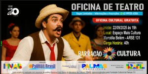 Palmas vai receber, no dia 22 de setembro, a Oficina de Teatro: Formação em Jogos Teatrais, totalmente gratuita, com foco no fortalecimento do teatro junino como expressão cultural e artística.