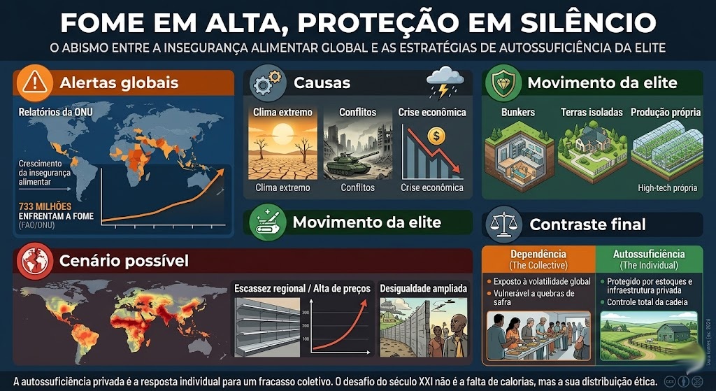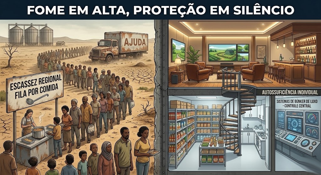 Enquanto organismos internacionais alertam para o avanço da fome no mundo, bilionários investem em bunkers e estruturas autossuficientes — dois movimentos que, juntos, revelam um cenário preocupante.