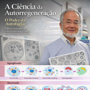 O corpo humano abriga um mecanismo silencioso e altamente sofisticado responsável por reciclar estruturas celulares, remover componentes danificados e preservar o equilíbrio biológico: a autofagia. O termo, de origem grega, significa literalmente “comer a si mesmo” e descreve um dos sistemas mais importantes de manutenção celular já identificados pela ciência.