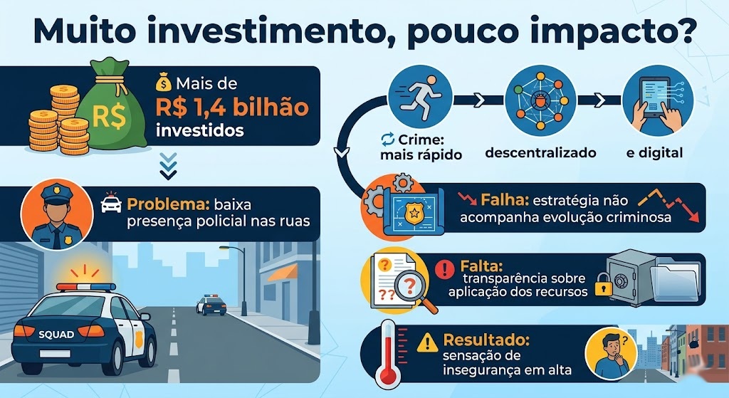 A frase resume um cenário que começa a incomodar — e muito — a população. O problema já não é apenas a existência da criminalidade, mas a aparente incapacidade do poder público de transformar investimento em segurança real.