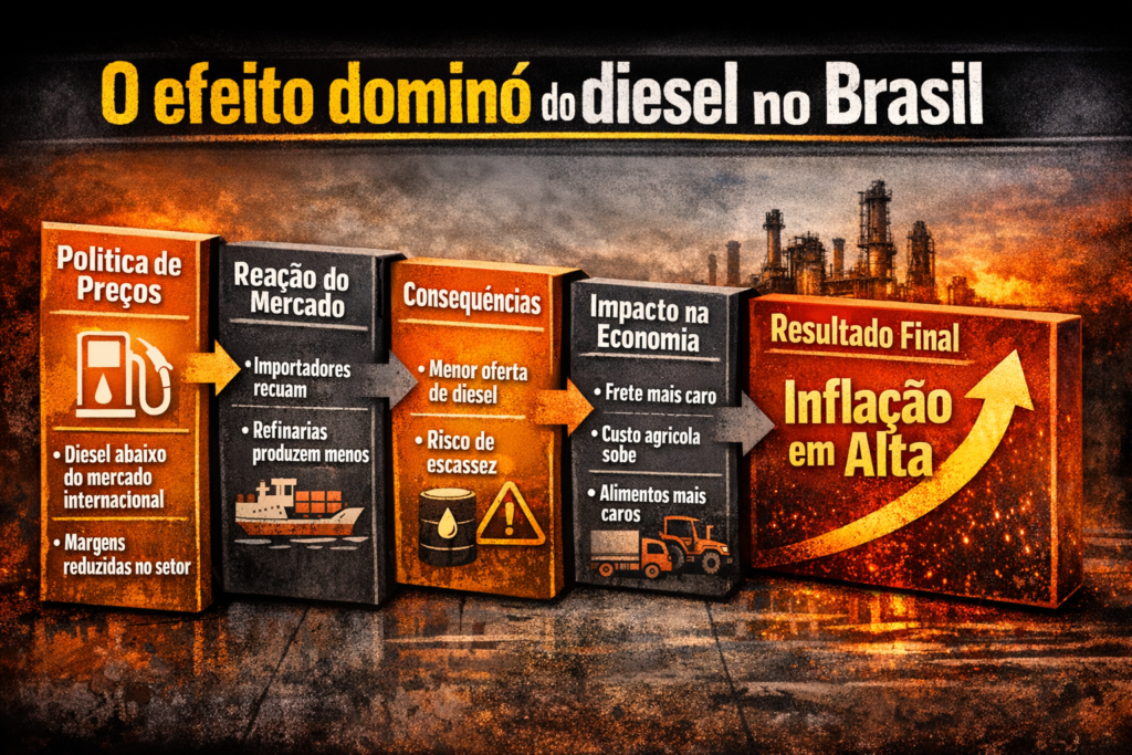Mesmo sendo produtor de petróleo, país enfrenta distorções no mercado de combustíveis; política de preços pressiona oferta e já afeta transporte, agronegócio e custo dos alimentos.