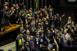 Foram 311 votos favoráveis, 163 contrários e 7 abstenções. O resultado foi comemorado por parlamentares da base bolsonarista, enquanto opositores entoavam em coro “sem anistia” antes do encerramento da votação.