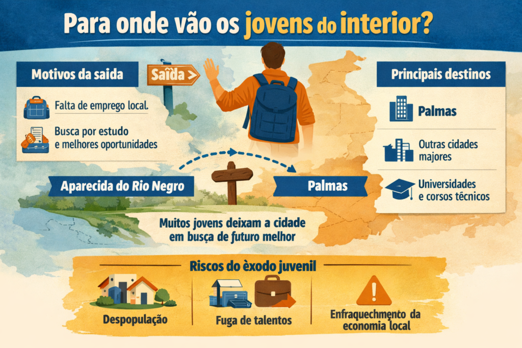 O destino mais comum costuma ser Palmas, capital do estado, onde se concentram universidades, cursos técnicos e maior oferta de vagas de emprego. Para muitos estudantes, a mudança representa a única chance de continuar os estudos ou iniciar uma carreira.