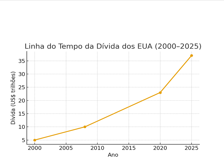 • US$ 37 trilhões: dívida bruta dos EUA em 2025