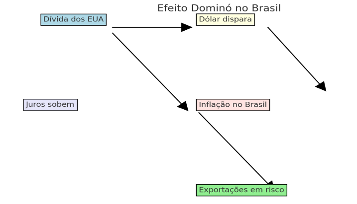 Câmbio e inflação → Com o dólar disparando, o real se desvaloriza. Importações ficam
